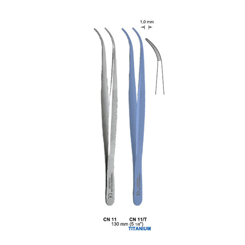Pinceta anatomiczna do szwu naczyniowego, dł. 130 mm, czubek 1 mm, odgięta