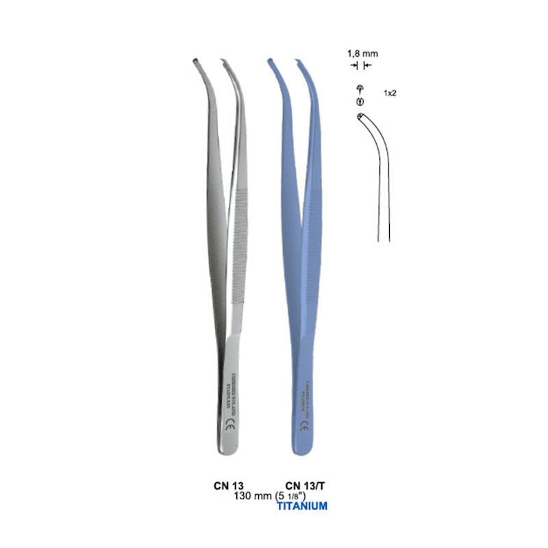 Pinceta chirurgiczna delikatna, dł. 130 mm, czubek 1,8 mm, 1×2 ząbki, odgięta