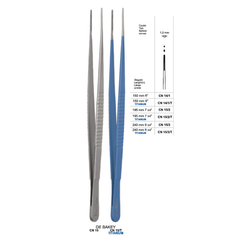 Pinceta atraumatyczna typu DE BAKEY, dł. 195 mm, czubek 1 mm, prosta