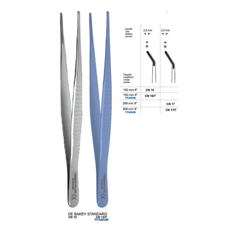 Pinceta typu DE BAKEY, dł. 150 mm, czubek 2 mm, odgięta