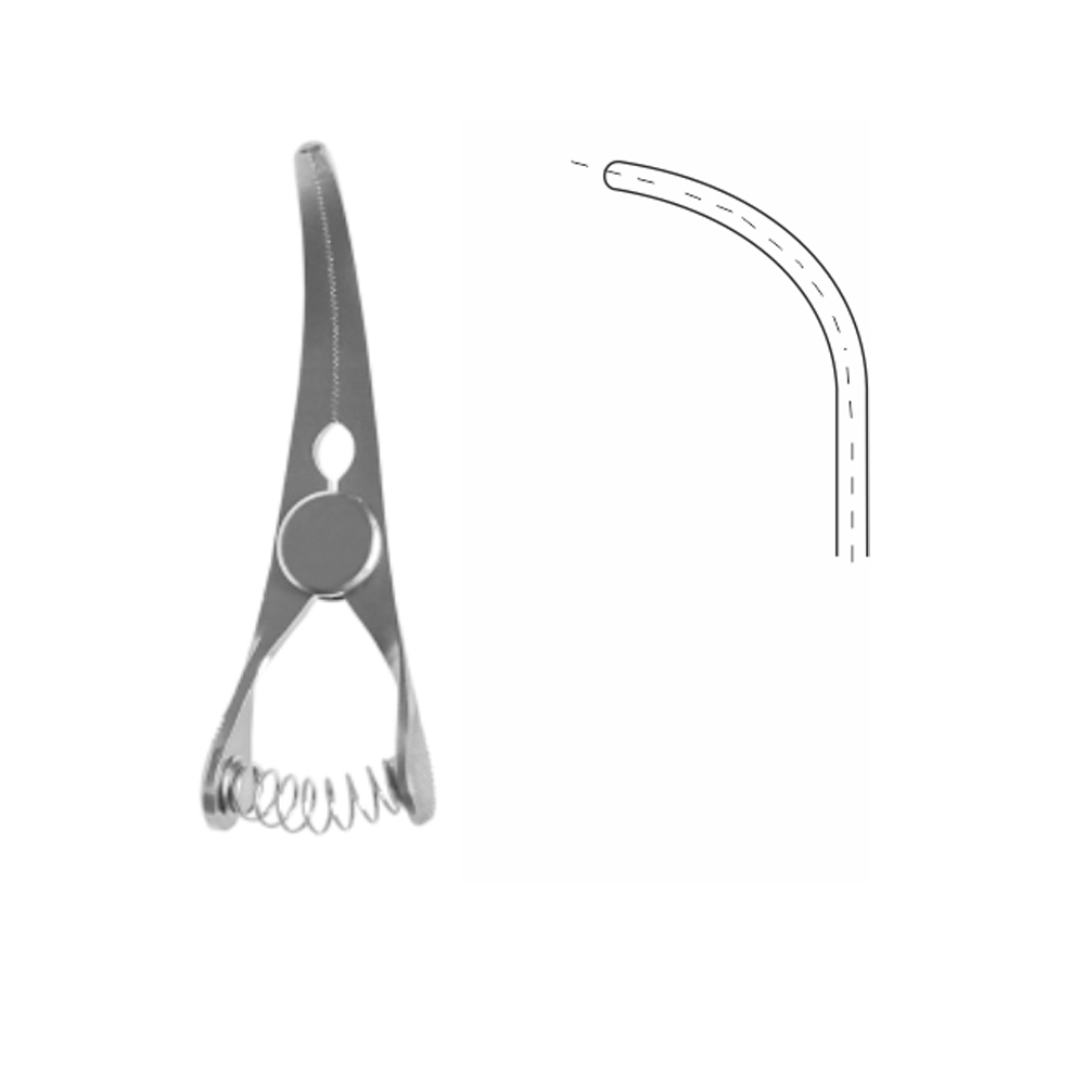 Zacisk naczyniowy typu WELDON MINIATURE, dł. całk. 31 mm, szczęki ząbkowane dł. 13,8 mm, odgięty