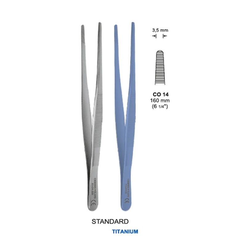 Pinceta anatomiczna typu STANDARD, dł. 160 mm, czubek 3,5 mm, prosta