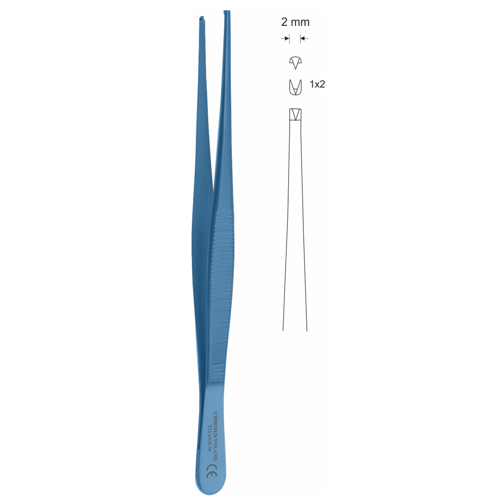 Pinceta chirurgiczna 180 mm, czubek 2 mm, 1×2 ząbki, prosta, z tytanu