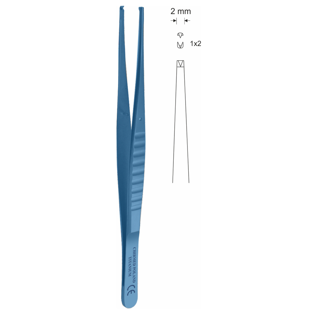 Pinceta chirurgiczna, dł. 165 mm, czubek 2 mm, 1×2 ząbki, prosta, z tytanu