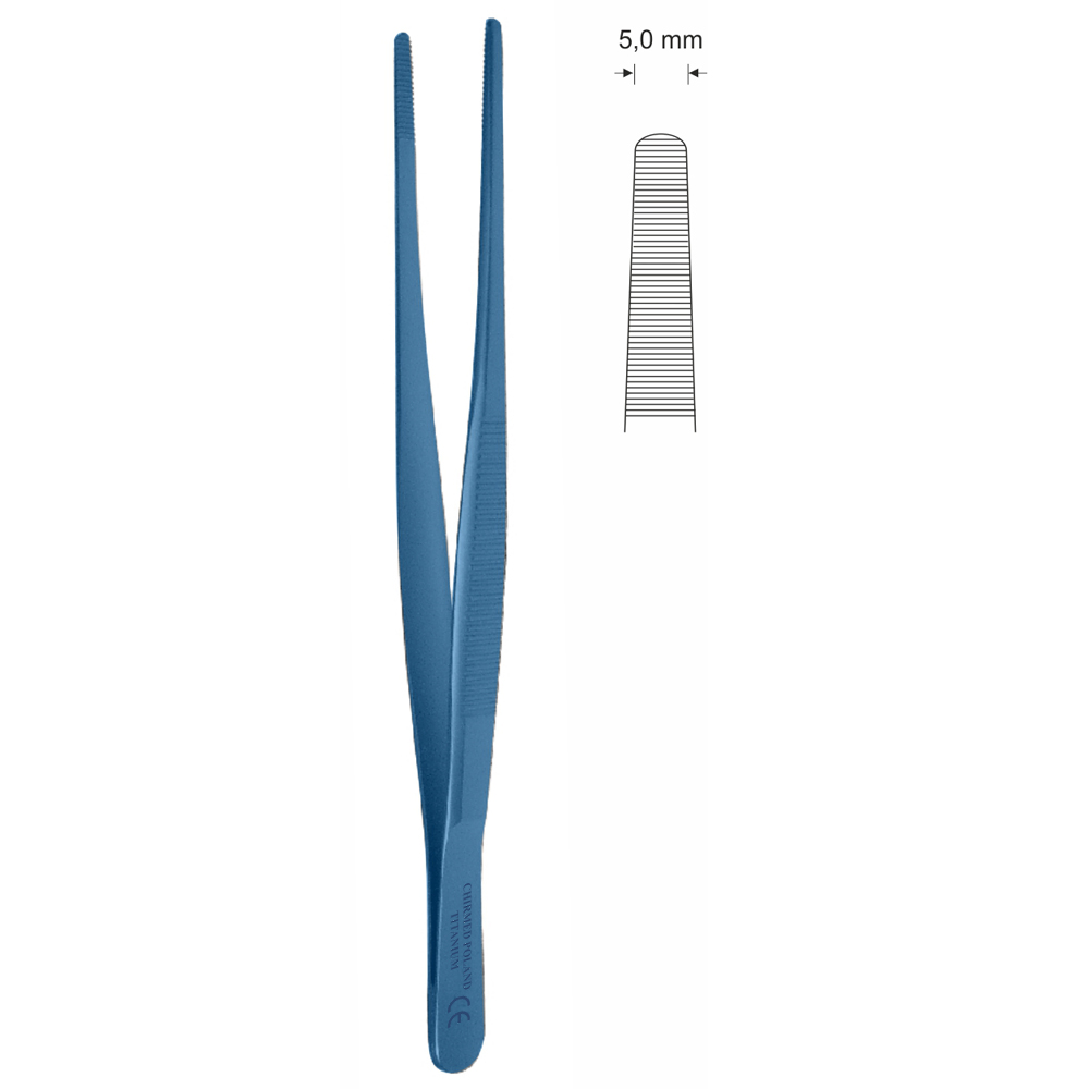 Pinceta anatomiczna typu STANDARD, dł. 300 mm, czubek 5 mm, prosta, z tytanu