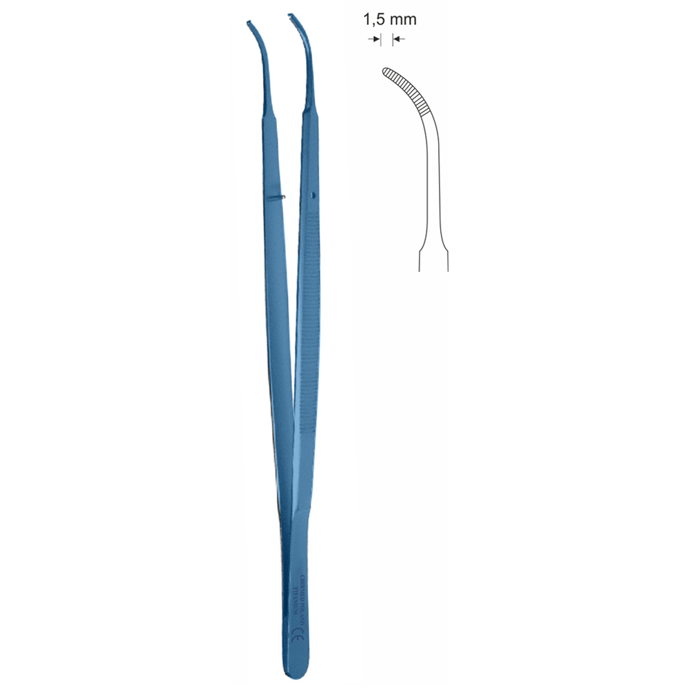 Pinceta anatomiczna typu GERALD, dł. 175 mm, czubek 1,5 mm, odgięta, z tytanu