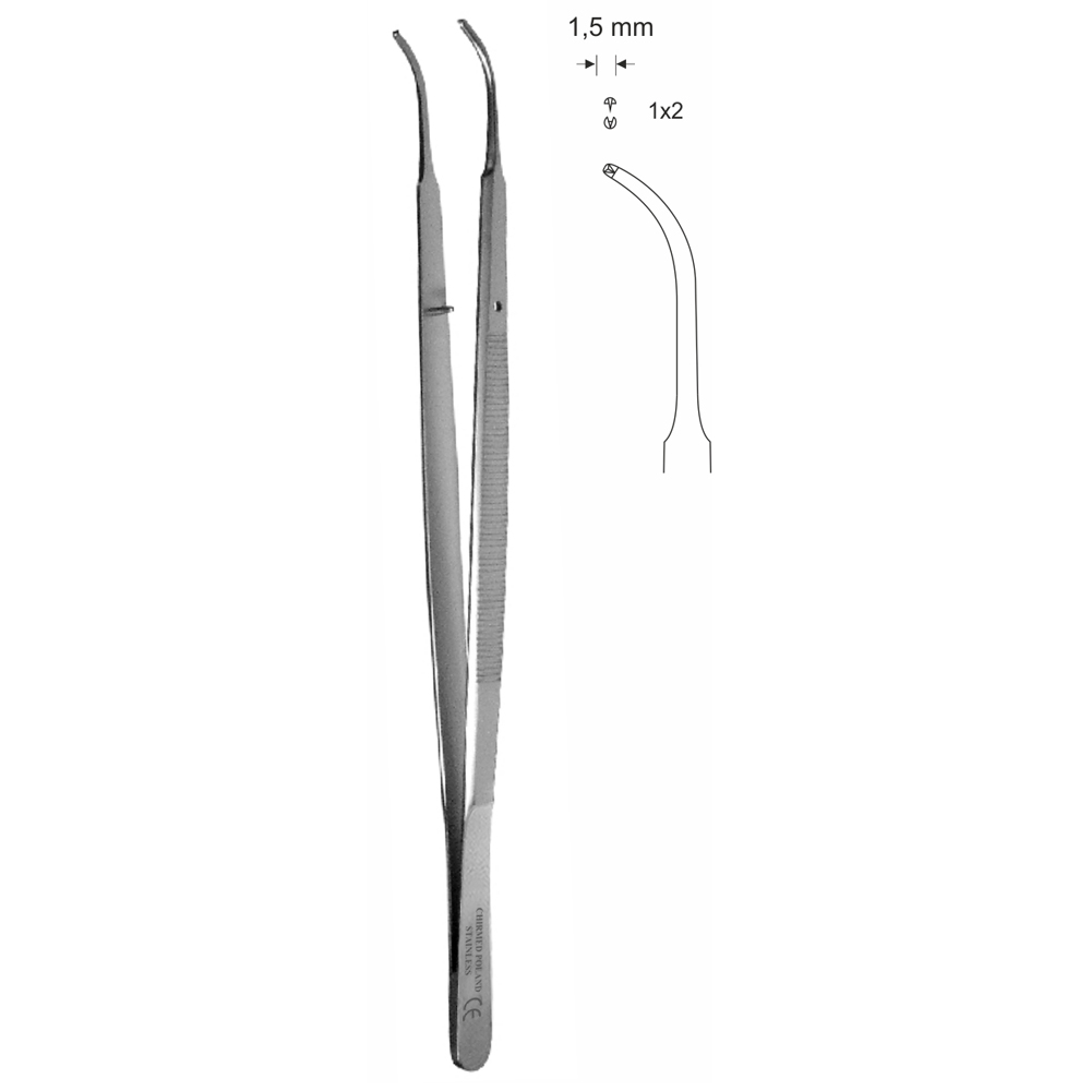 Pinceta chirurgiczna typu GERALD, dł. 175 mm, czubek 1,5 mm, 1×2 ząbki, odgięta