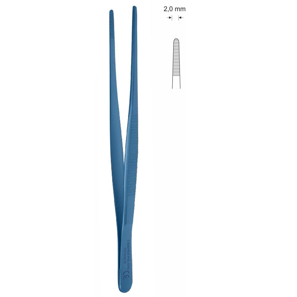 Pinceta anatomiczna typu MEDIUM, dł. 145 mm, czubek 2 mm, prosta, z tytanu