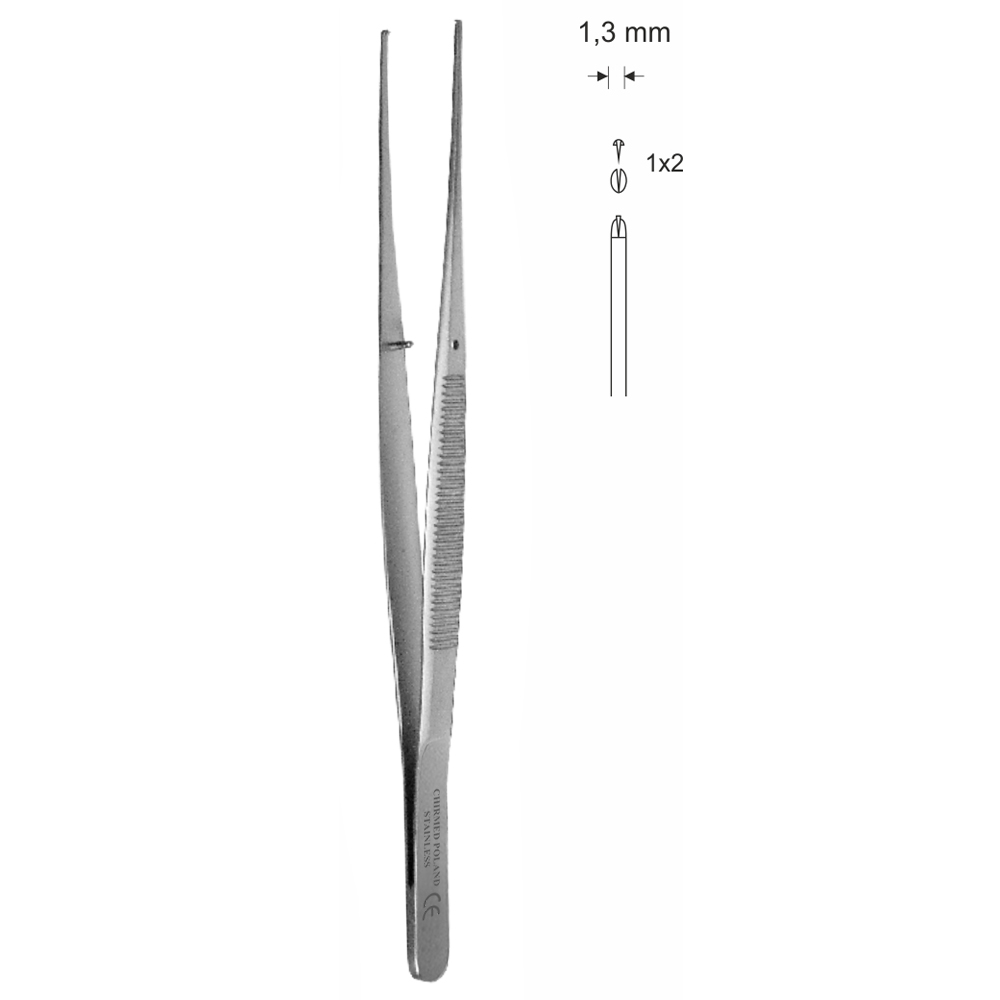 Pinceta chirurgiczna delikatna typu SEMKEN, dł. 152 mm, czubek 1,3 mm, 1×2 ząbki, prosta