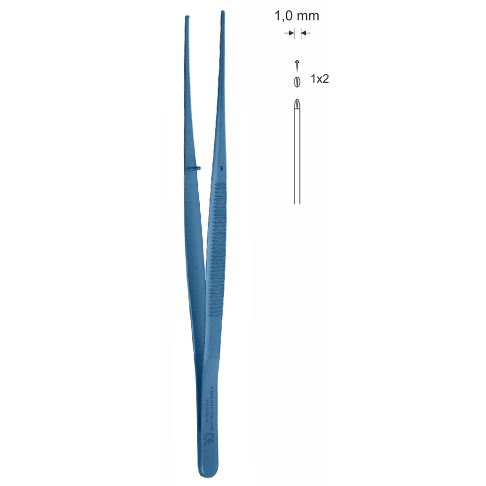 Pinceta chirurgiczna delikatna typu SEMKEN, dł. 174 mm, czubek 1 mm, 1×2 ząbki, prosta, z tytanu