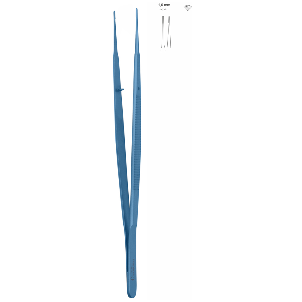 Pinceta typu GERALD, dł. 210 mm, czubek kowadełko 1 mm, z nasypem diamentowym, prosta, z tytanu