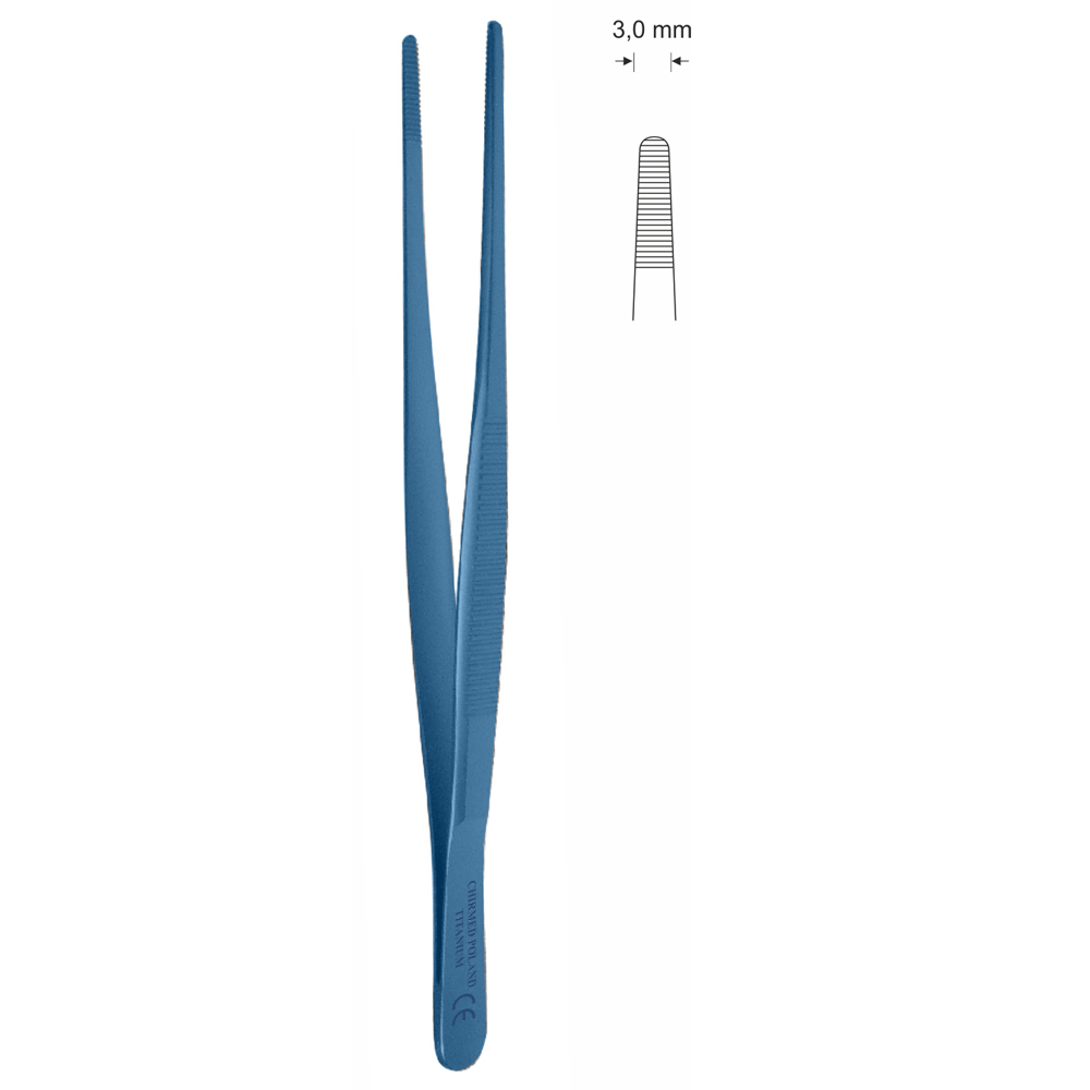 Pinceta anatomiczna typu MEDIUM, dł. 200 mm, czubek 3 mm, prosta, z tytanu