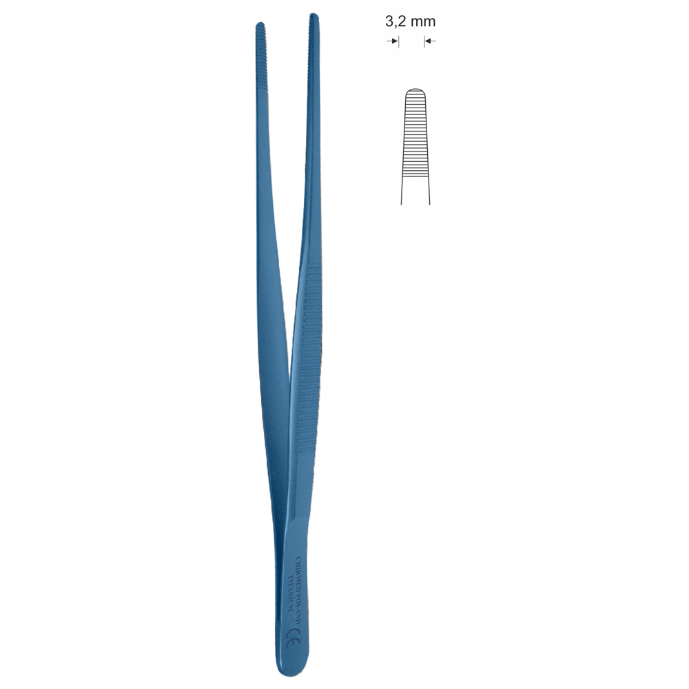 Pinceta anatomiczna typu MEDIUM, dł. 250 mm, czubek 2,5 mm, prosta, z tytanu