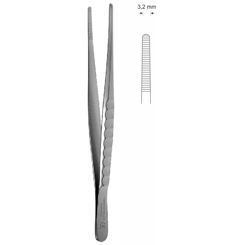 Pinceta anatomiczna, dł. 180 mm, czubek 3,2 mm, prosta