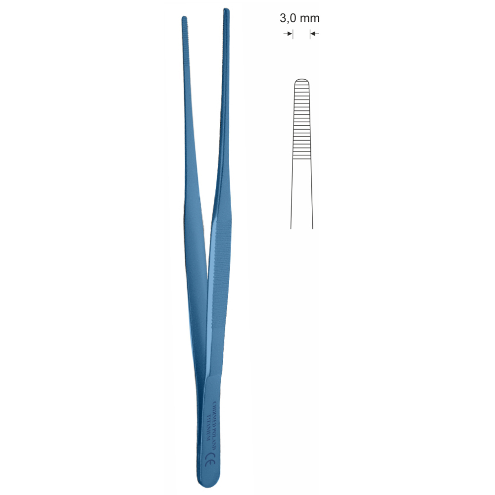 Pinceta anatomiczna, dł. 200 mm, czubek 3 mm, prosta, z tytanu