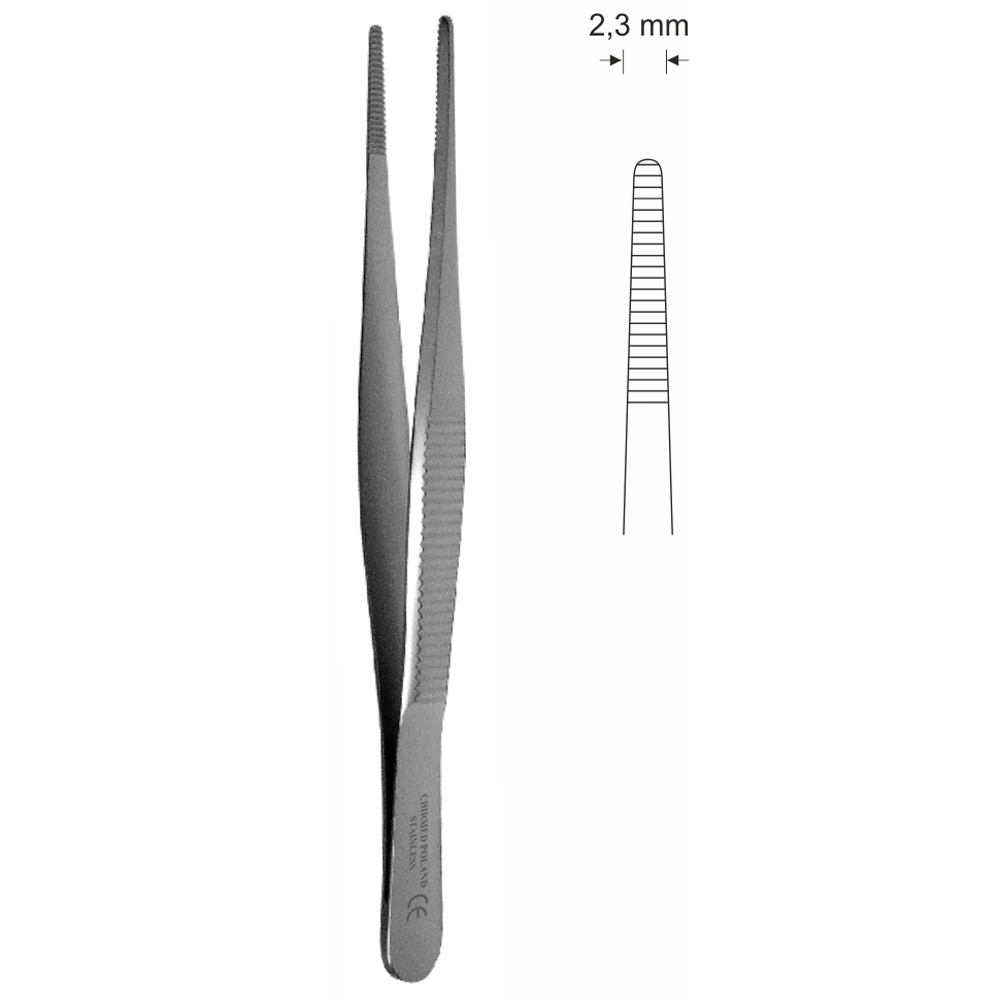 Pinceta anatomiczna, dł. 130 mm, czubek 2,3 mm, prosta