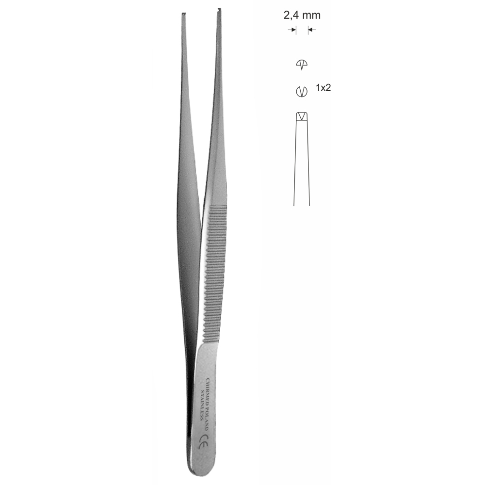 Pinceta chirurgiczna, dł. 180 mm, czubek 2,4 mm, 1×2 ząbki, prosta