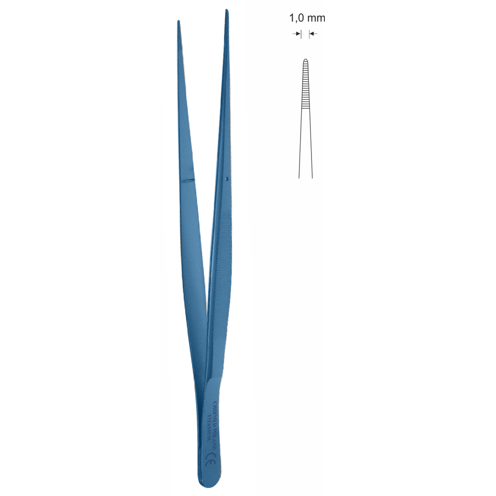 Pinceta anatomiczna z włąskimi czubkami, dł. 200 mm, czubek 1 mm, prosta, z tytanu