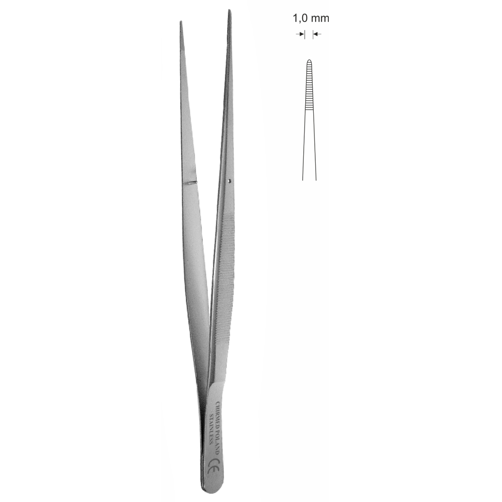 Pinceta anatomiczna z włąskimi czubkami, dł. 200 mm, czubek 1 mm, prosta