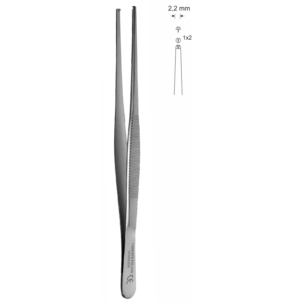 Pinceta chirurgiczna typu MEDIUM, dł. 130 mm, czubek 2,2 mm, 1×2 ząbki, prosta