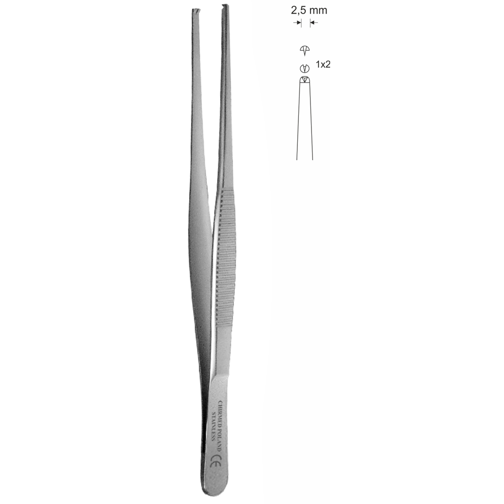 Pinceta chirurgiczna typu STANDARD, dł. 130 mm, czubek 2,5 mm, 1×2 ząbki, prosta