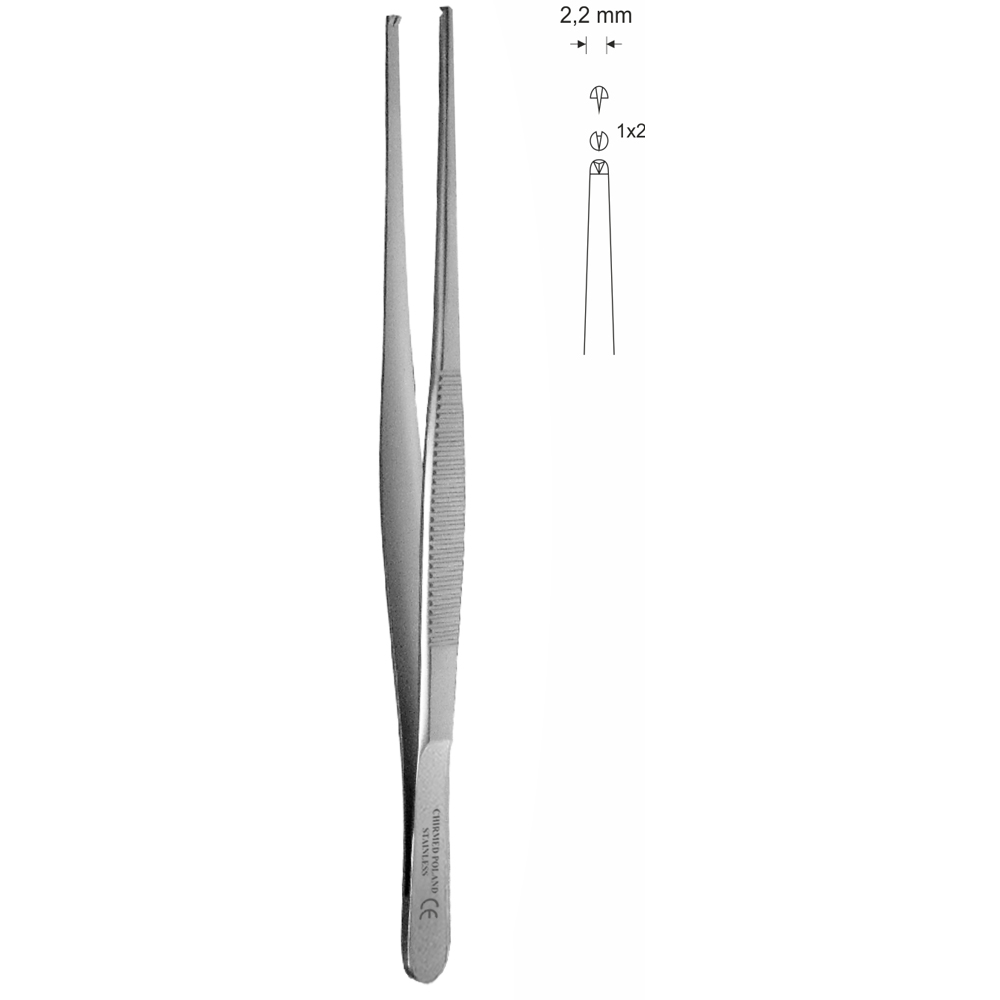 Pinceta chirurgiczna typu MEDIUM, dł. 145 mm, czubek 2,2 mm, 1×2 ząbki, prosta