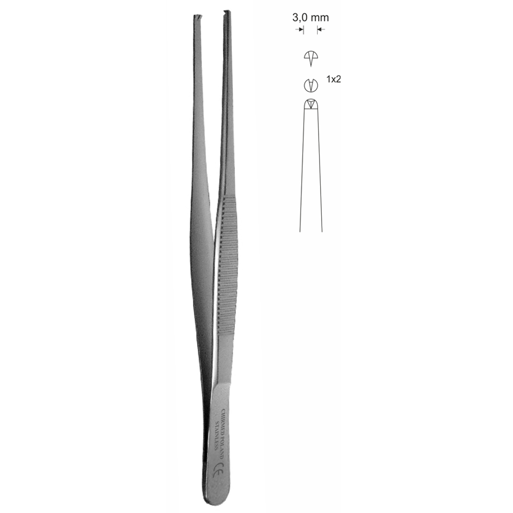 Pinceta chirurgiczna typu STANDARD, dł. 180 mm, czubek 3 mm, 1×2 ząbki, prosta