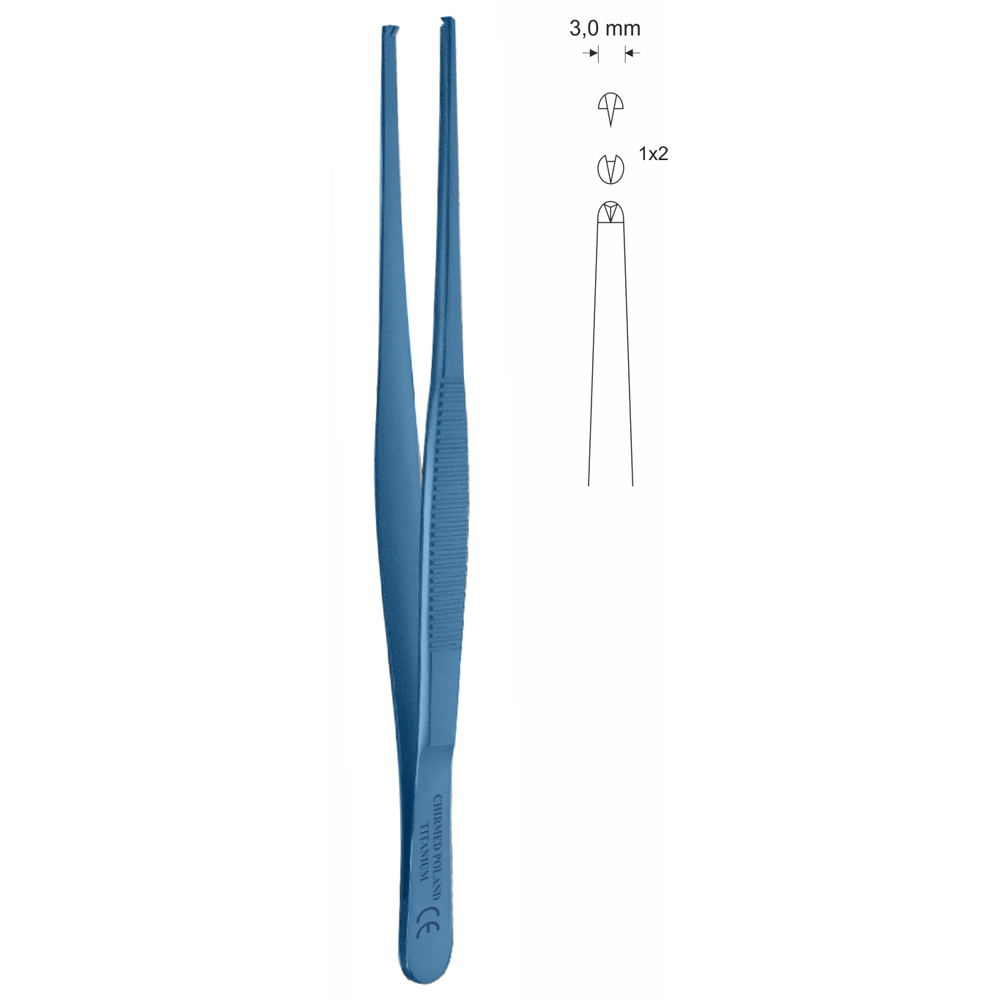 Pinceta chirurgiczna typu STANDARD, dł. 200 mm, czubek 3 mm, 1×2 ząbki, prosta, z tytanu