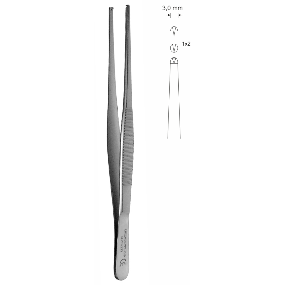 Pinceta chirurgiczna typu STANDARD, dł. 200 mm, czubek 3 mm, 1×2 ząbki, prosta