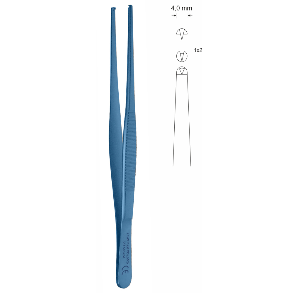 Pinceta chirurgiczna typu STANDARD, dł. 300 mm, czubek 4 mm, 1×2 ząbki, prosta, z tytanu