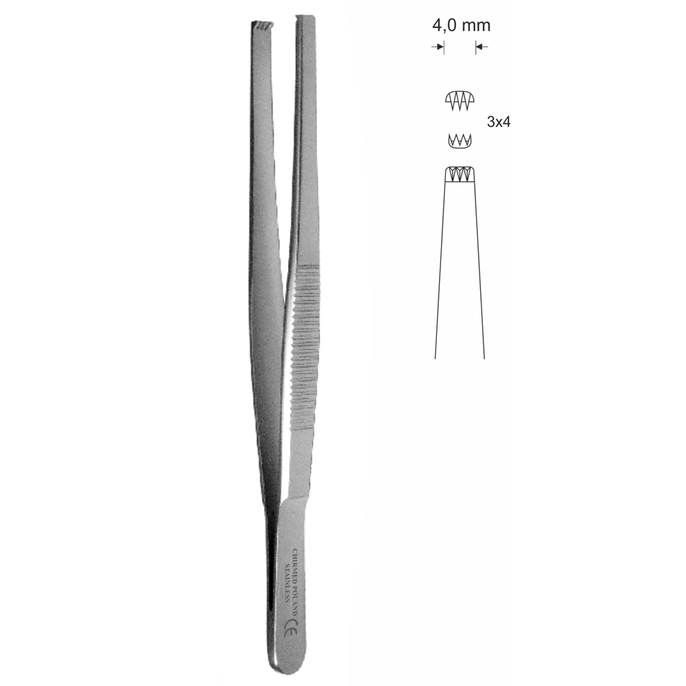 Pinceta chirurgiczna, dł. 145 mm, czubek 4 mm, 3×4 ząbki, prosta