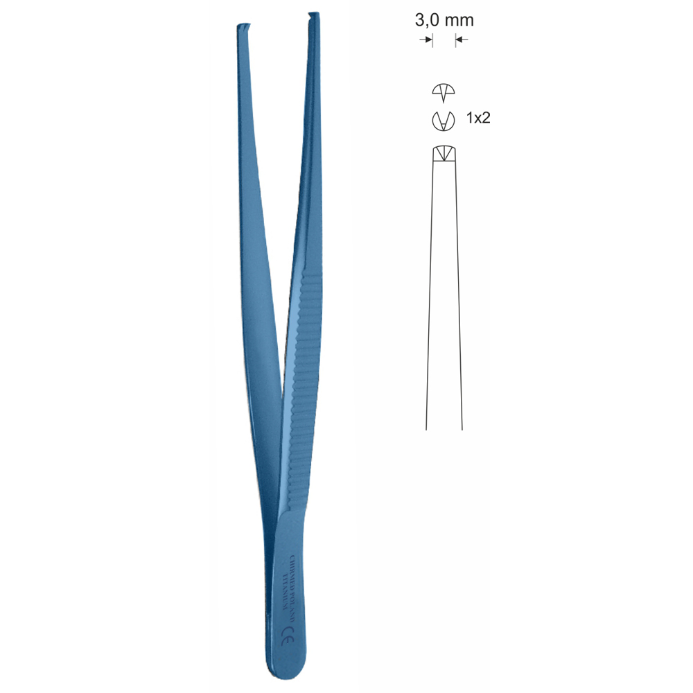 Pinceta chirurgiczna, dł. 180 mm, czubek 3 mm, 1×2 ząbki, prosta, z tytanu