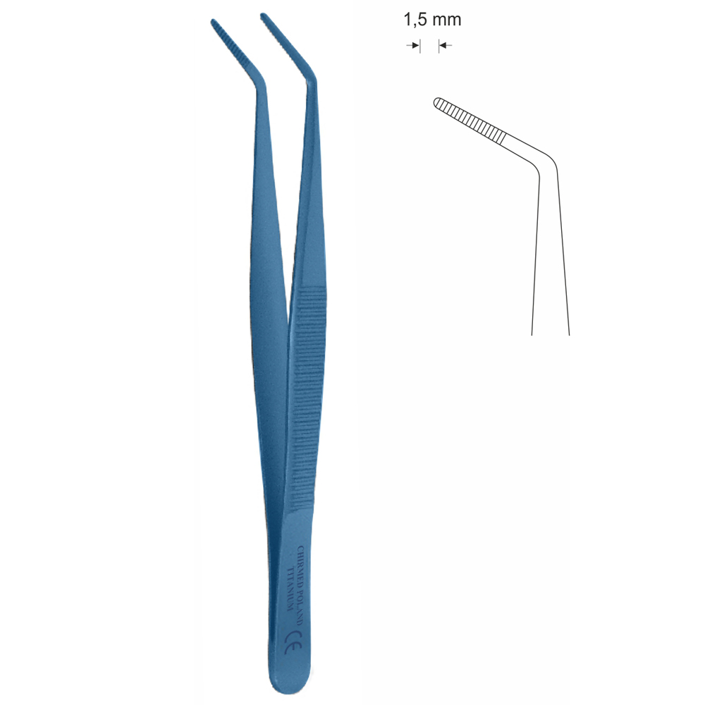 Pinceta anatomiczna, dł. 125 mm, czubek 1,5 mm, odgięta, z tytanu