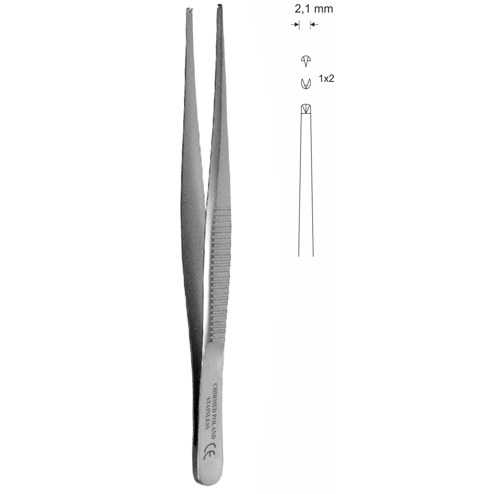 Pinceta chirurgiczna, dł. 130 mm, czubek 2,1 mm, 1×2 ząbki, prosta
