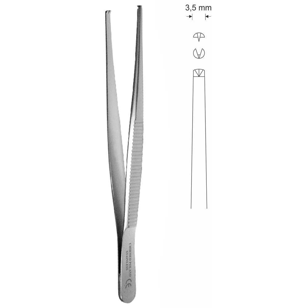 Pinceta chirurgiczna, dł. 230 mm, czubek 3,5 mm, 1×2 ząbki, prosta