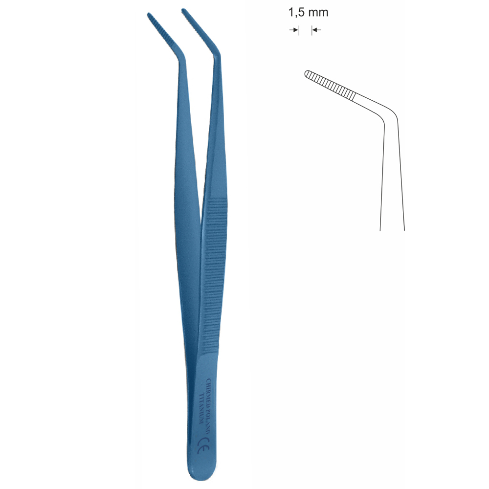 Pinceta anatomiczna, dł. 115 mm, czubek 1,5 mm, odgięta, z tytanu