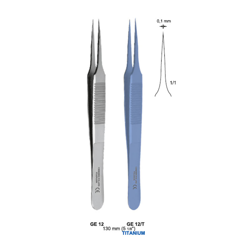 Pinceta mikrochirurgiczna bez nacięć i bez ząbków, model jubilerski, do genetyki, dł. 130 mm, czubek 0,1 mm, prosta