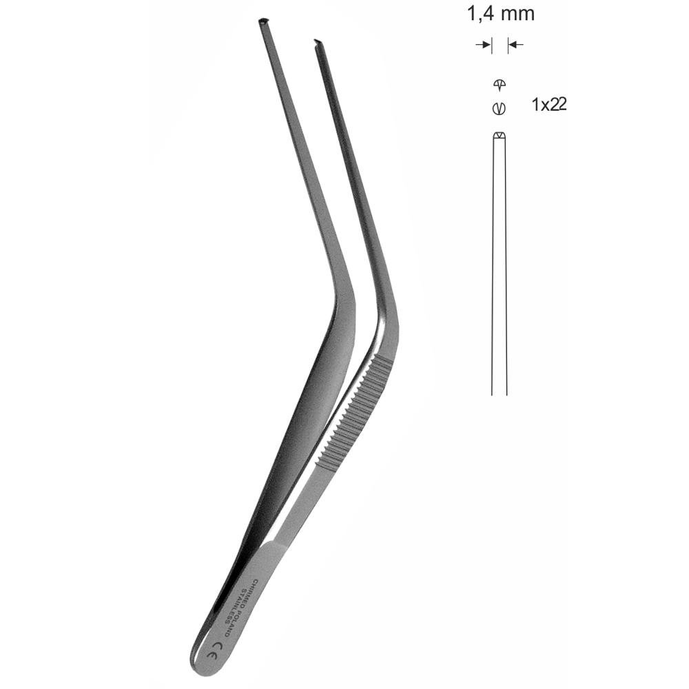 Pinceta uszna, nosowa typu TROELTSCH, chirurgiczna, dł. 100 mm, czubek 1,4 mm, 1×2 ząbki