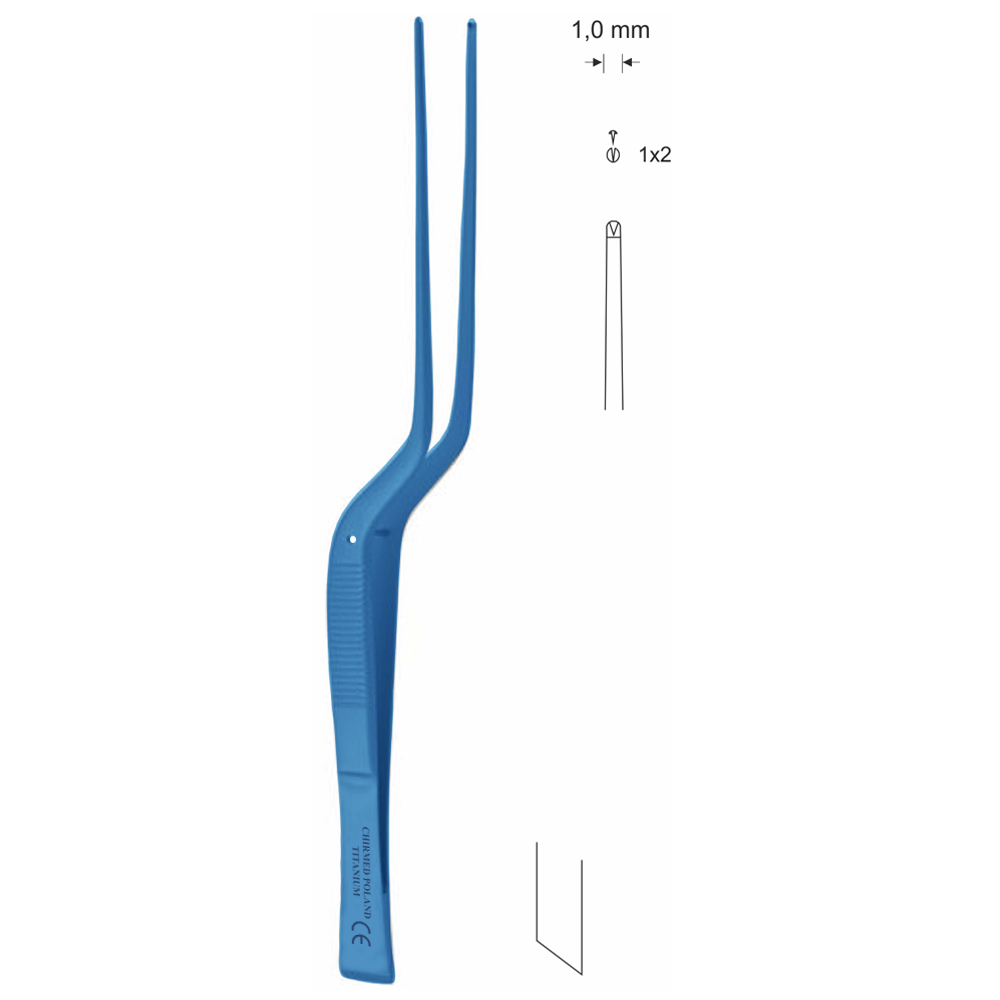 Pinceta uszna, nosowa, chirurgiczna, bagnetowa, z dyssektorem, z kołkiem naprowadzającym, dł. 170 mm, czubek 1 mm, czubek 1×2, z tytanu