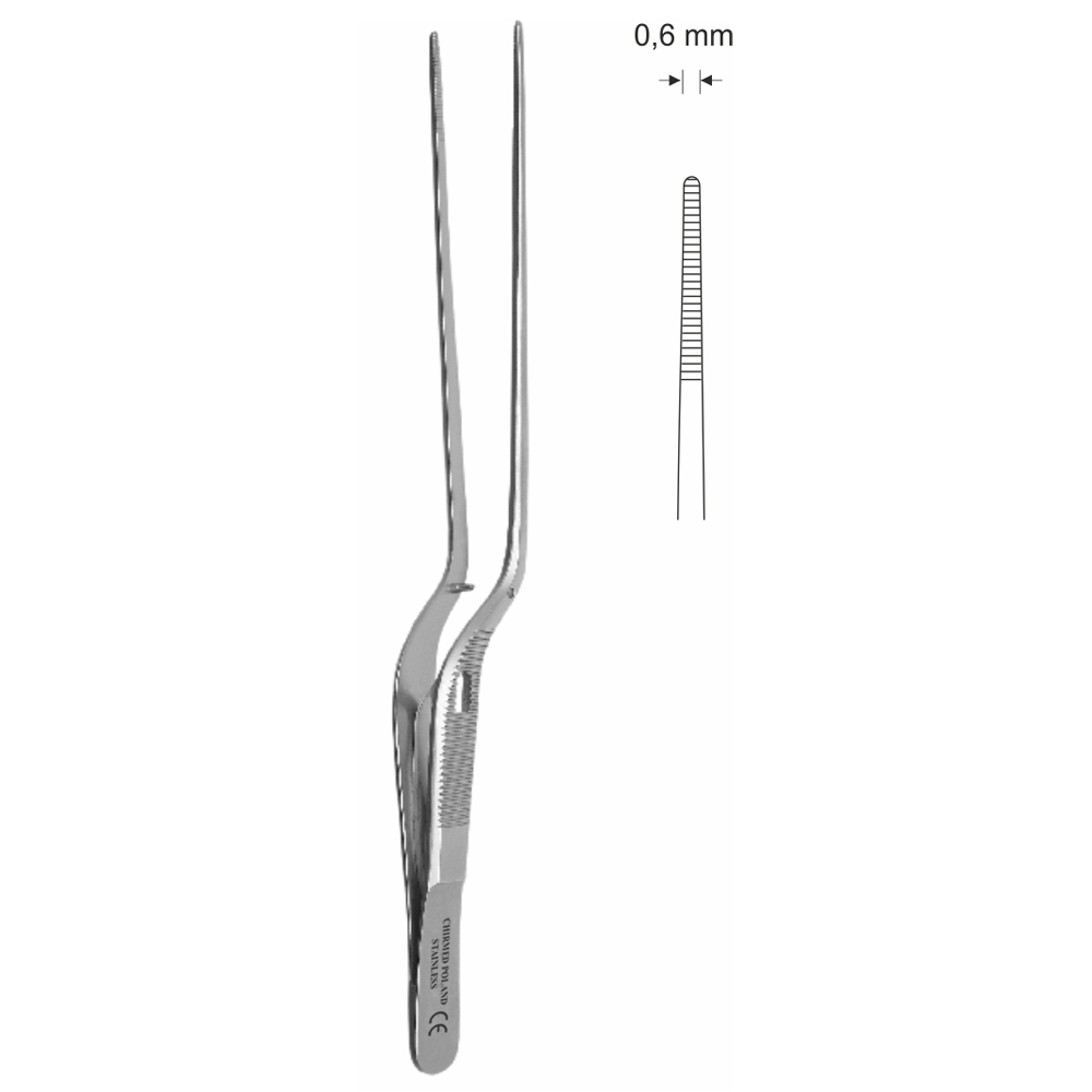 Pinceta uszna, nosowa typu JANSEN, anatomiczna, bagnetowa, z kołkiem naprowadzającym, dł. 160 mm, czubek 0,6 mm
