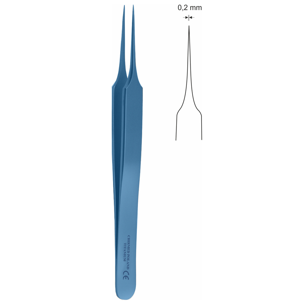 Pinceta mikrochirurgiczna, model szwajcarski (jubilerski), bez moletu, dł. 110 mm, końcówka 0,2 mm, z tytanu