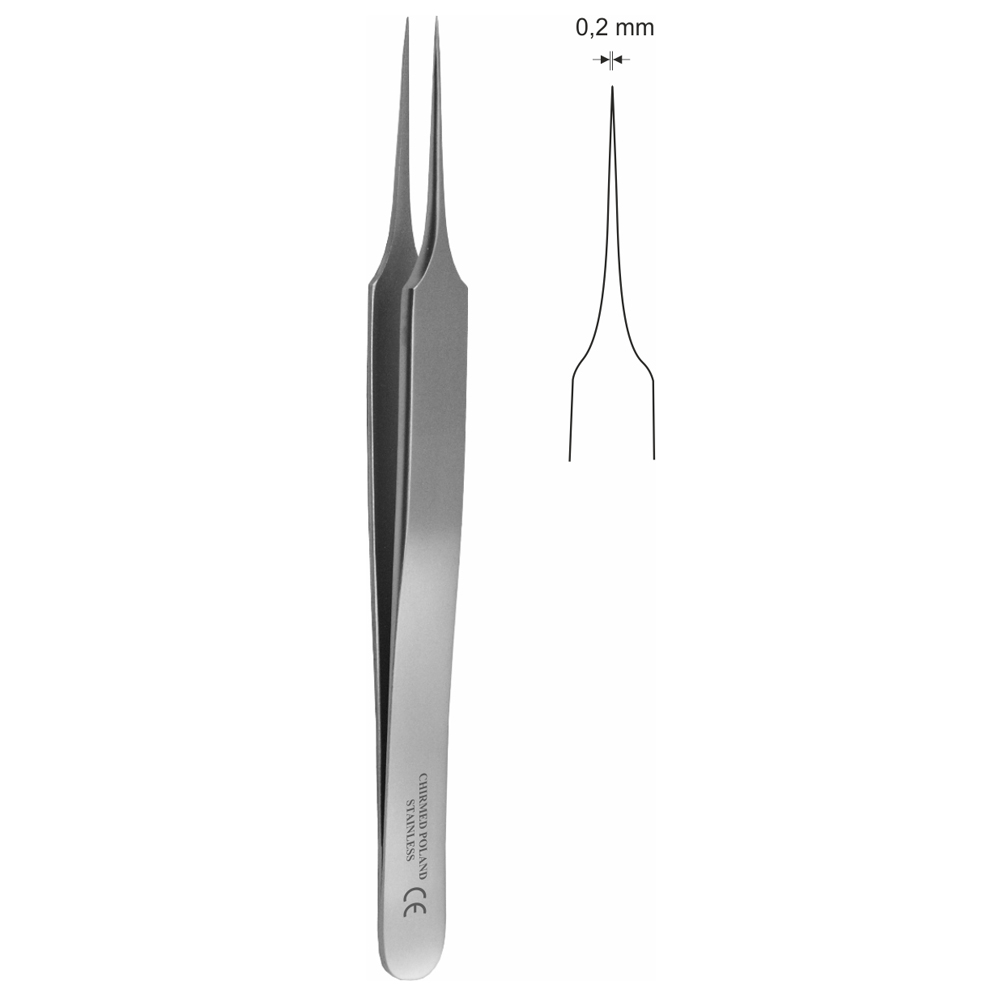Pinceta mikrochirurgiczna, model szwajcarski (jubilerski), bez moletu, dł. 110 mm, końcówka 0,2 mm