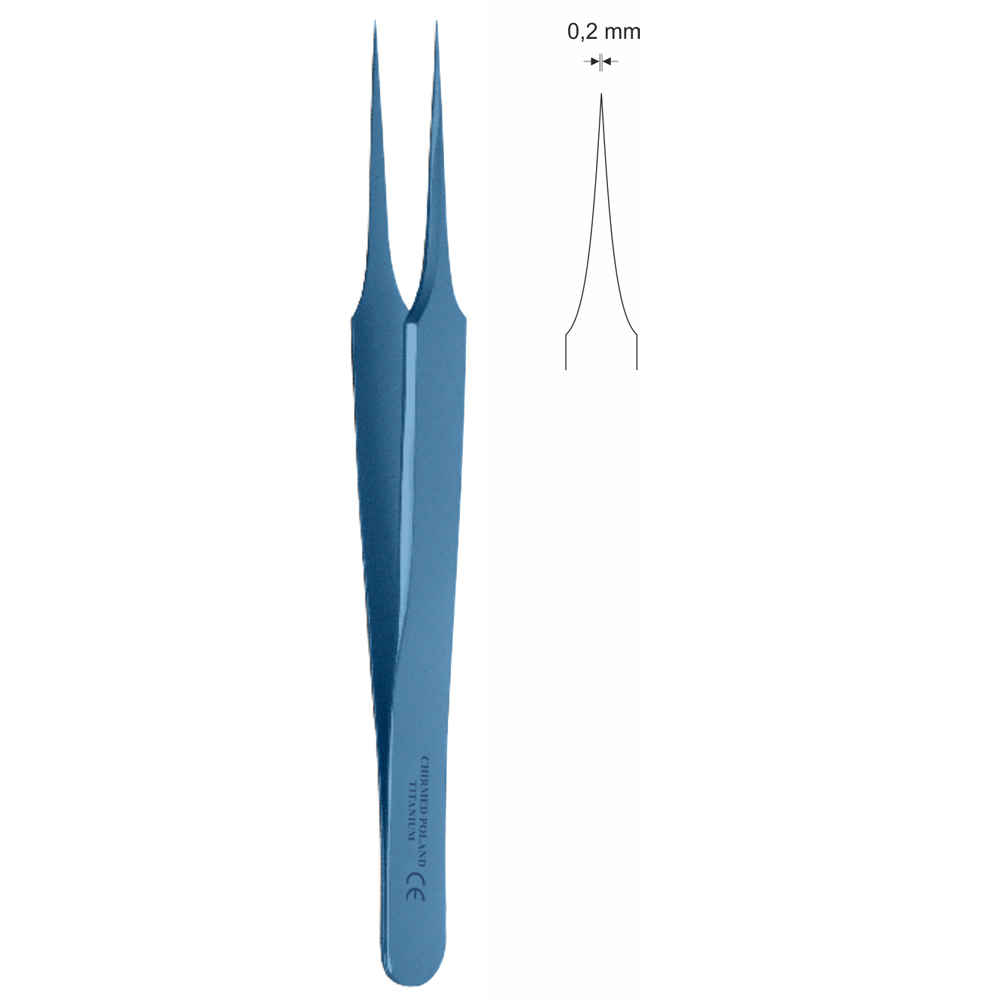 Pinceta mikrochirurgiczna bez nacięć i bez ząbków, bez moletu, model szwajcarski (jubilerski), dł. 110 mm, czubek 0,2 mm, prosta, z tytanu