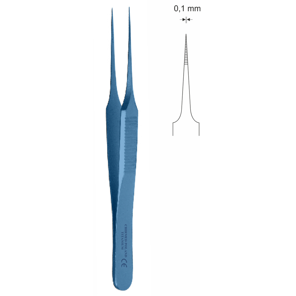 Pinceta mikrochirurgiczna z nacięciami, model szwajcarski (jubilerski), dł. 90 mm, czubek 0,1 mm, prosta, z tytanu