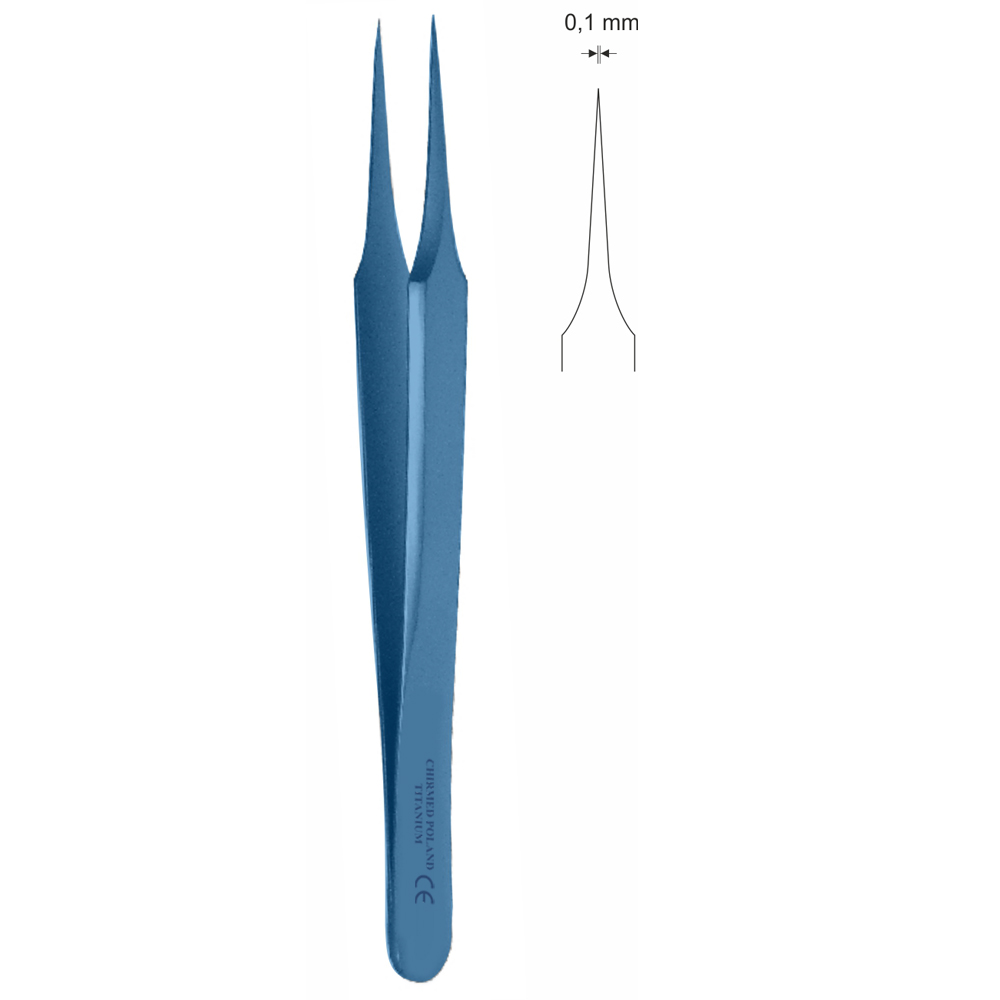 Pinceta mikrochirurgiczna bez nacięć i bez ząbków, bez moletu, model szwajcarski (jubilerski), dł. 115 mm, czubek 0,1 mm, prosta, z tytanu