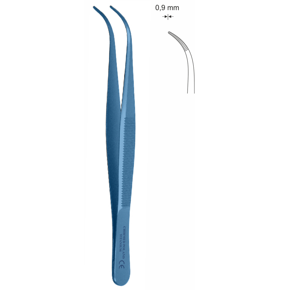 Pinceta anatomiczna delikatna, dł. 110 mm, czubek 0,9 mm, odgięta, z tytanu
