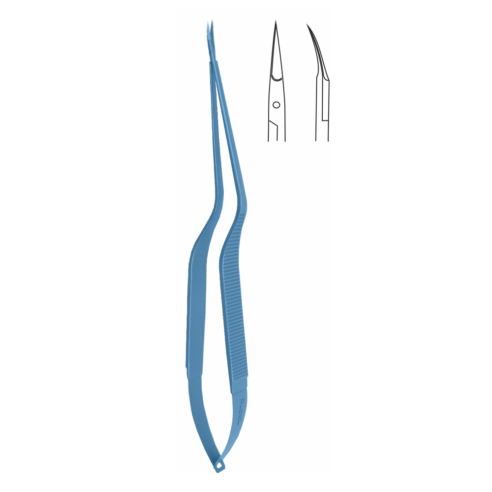 Nożyczki mikrochirurgiczne bagnetowe, czubek odgięty w dół, 220 mm, z tytanu