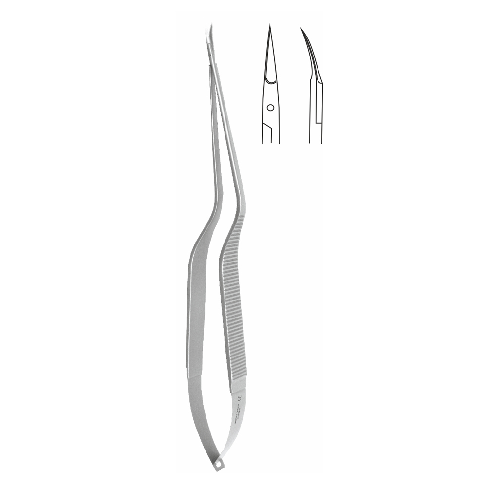 Nożyczki mikrochirurgiczne bagnetowe, czubek odgięty w dół, 220 mm