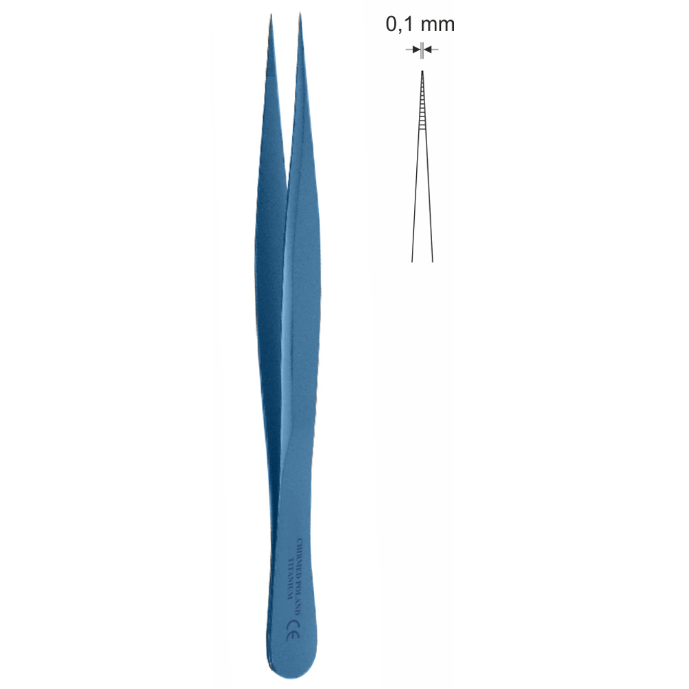 Pinceta mikrochirurgiczna z nacięciami, model jubilerski, bez moletu, dł. 110 mm, czubek 0,1 mm, prosta, z tytanu