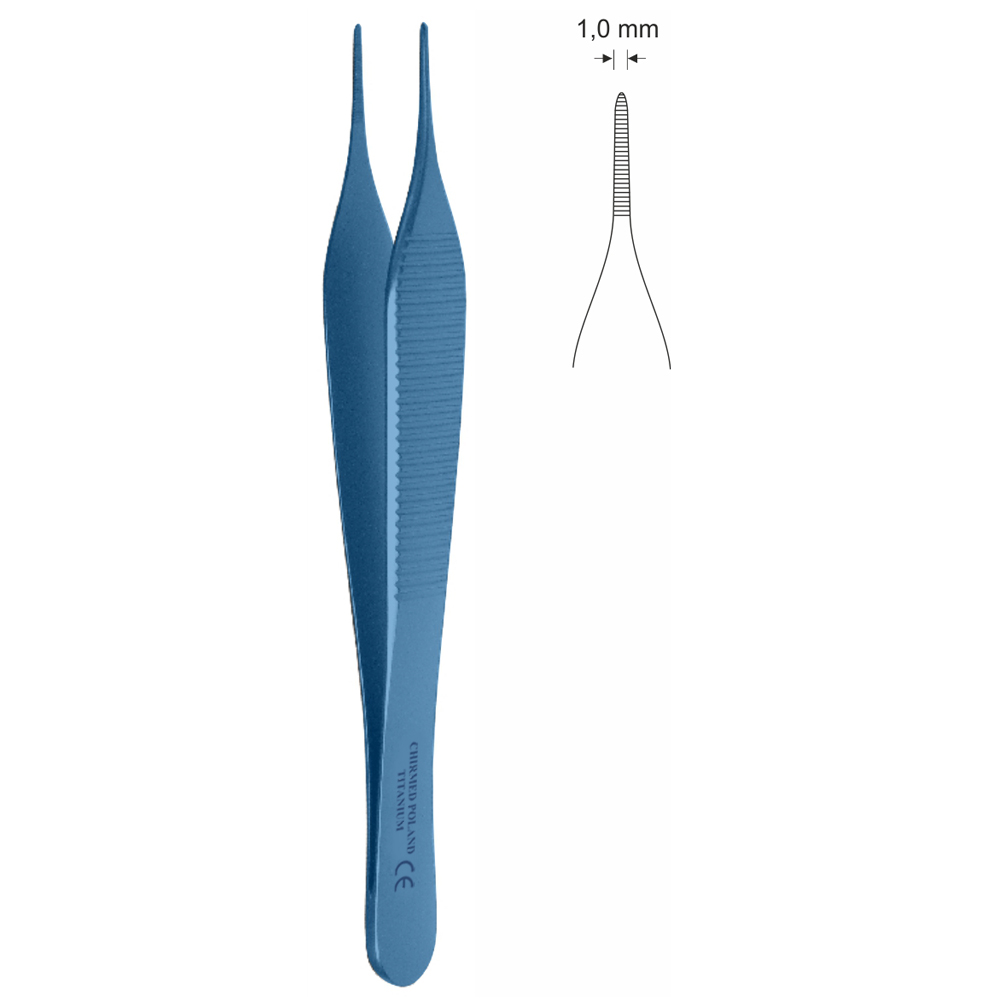 Pinceta mikrochirurgiczna, anatomiczna typu ADSON, dł. 120 mm, czubek 1 mm, prosta, z tytanu